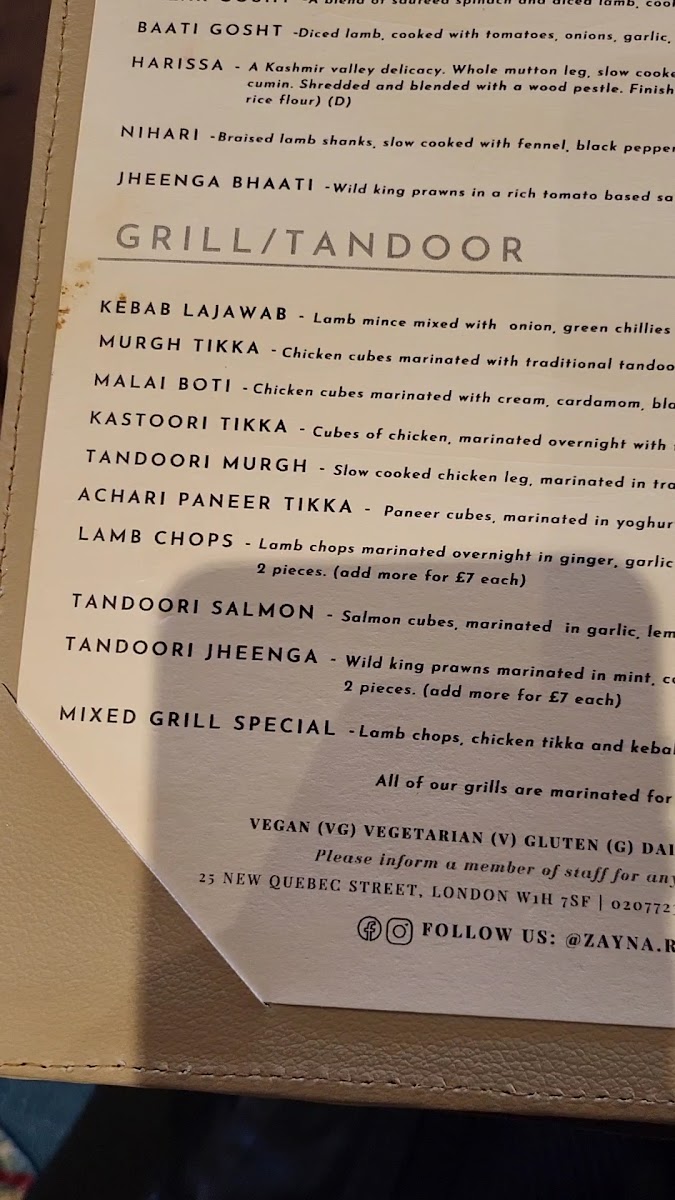 Located in the heart of London at 25 New Quebec St, Zayna offers a unique dining experience, showcasing a blend of traditional and contemporary South Asian cuisine. The atmosphere is inviting, with well-decorated interiors that create a cozy and welcoming environment.