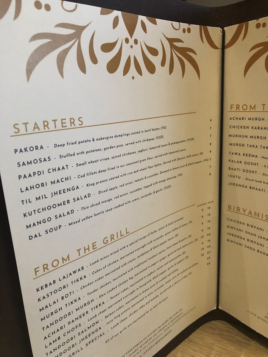 Zayna Menu